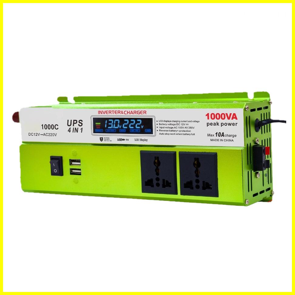 The CXUPS-2000W modified sine wave inverter combines UPS charging functionality with DC 12V input and AC 220V output. It features an LCD display, three AC outlets, four USB ports, and independent DC/AC control switches. Ideal for home, vehicle, camping, and emergency power applications.