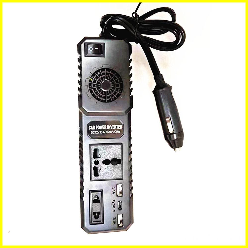 This 200W Modified Sine Wave Car Power Inverter is a compact and practical power conversion device designed for vehicle use. It supports dual input (DC12V/24V) and outputs AC220V, compatible with various electronic devices. Equipped with a Type-C port and dual 3.1A USB outputs, it can charge laptops, phones, cameras, drones, and other small electronics simultaneously—perfect for outdoor travel, emergency backup, and mobile work scenarios.