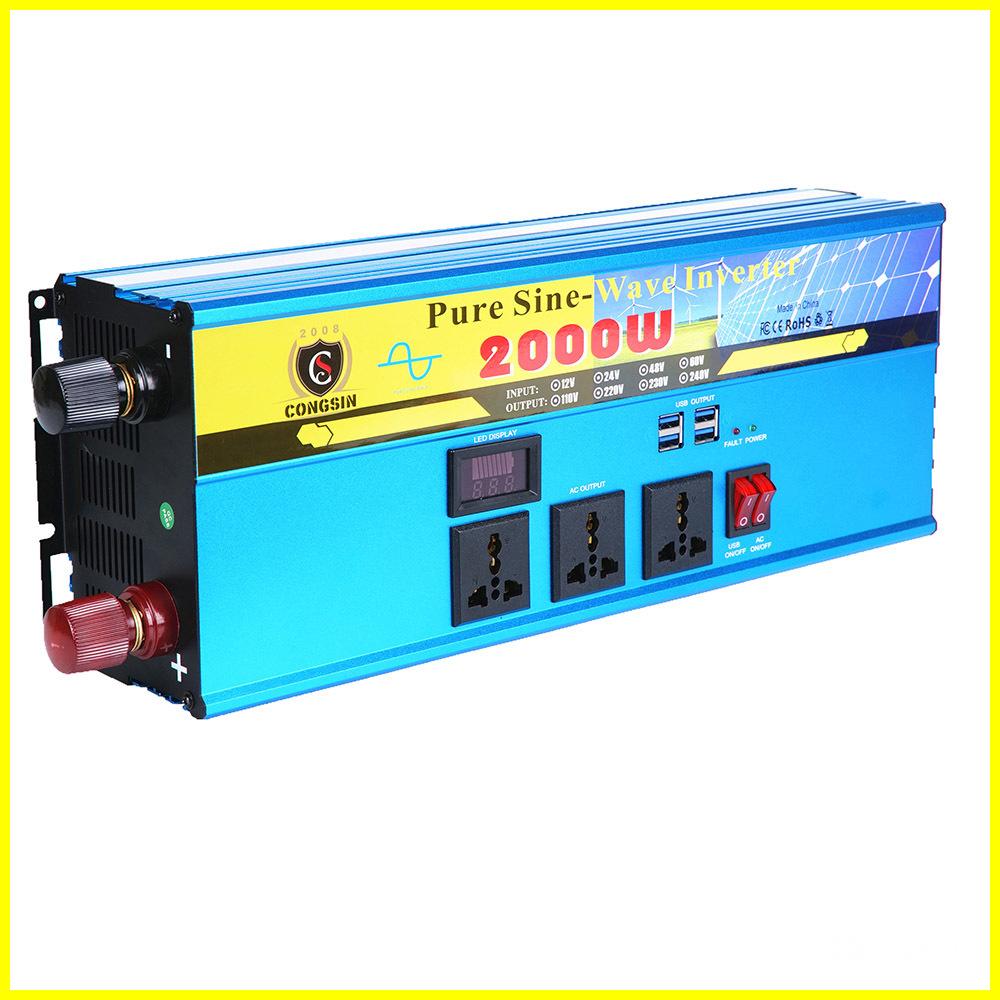 2000W Full-Power Pure Sine Wave Inverter, DC 12V to AC 220V Power Converter, Equipped with 3 AC Universal Sockets