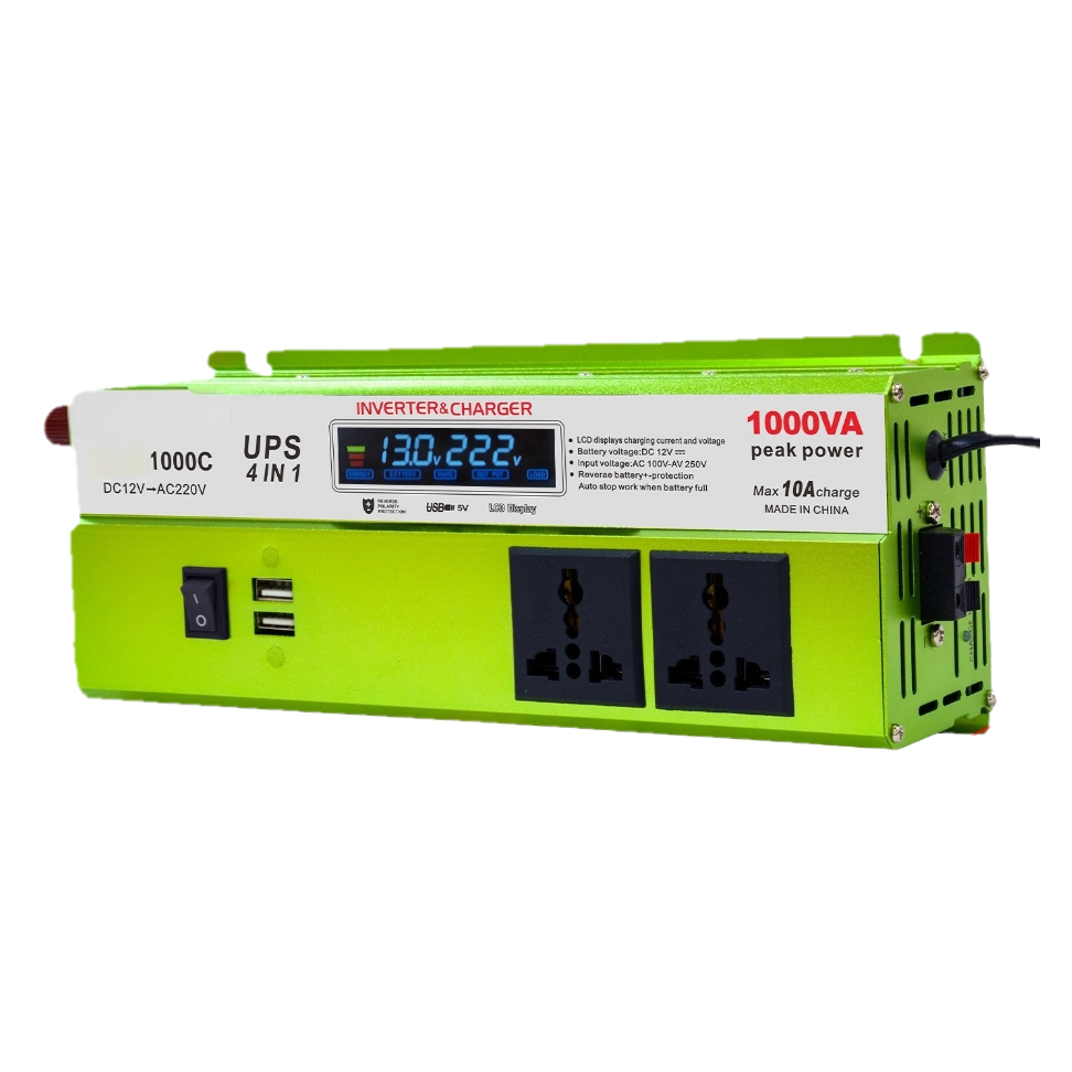 Our CS1000DDBC 1000W modified sine wave inverter is a professional power conversion device that converts DC 12V from batteries into AC 220V electricity. It is designed with user convenience in mind, featuring an LED display for real-time status monitoring, multiple charging ports (3 USB, 1 Type-C, 1 DC 12V) and two universal sockets to power a wide range of devices simultaneously. Its compact size (250×95×55mm) and lightweight design (NW: 0.84kg) make it easy to carry, ideal for outdoor activities, emergency home use, and on-the-go power needs.
