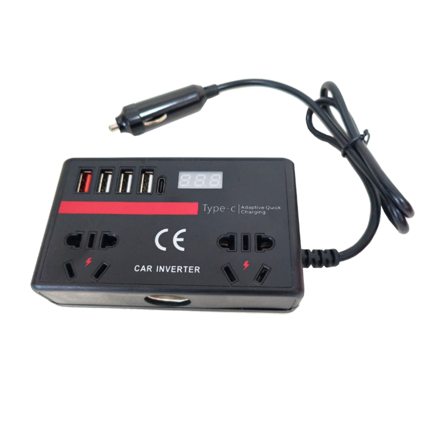 This 150W modified sine wave car inverter supports dual DC12V/24V input and AC220V output. It is equipped with a Type-C port, two 3.1A USB ports, and a national standard socket. It is compact and portable, providing stable AC power conversion in various scenarios such as in the car, meeting the power supply needs of mobile phones, tablets, small home appliances and other devices.